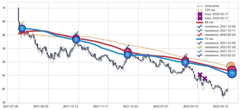 ⚄ 价格在均线遇到阻力后再次向下回落了【极短】距离, 第⑦卖出点 阻力效果【等待验证】