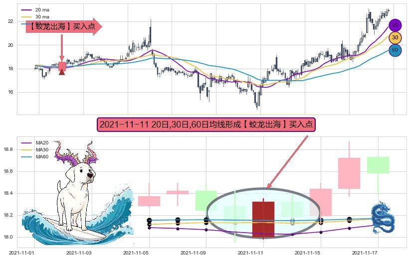 形态多维评估: ⚀ 2021-11-11日显现 20日-30日-60日均线 【蛟龙出海】买入点 看多信号,后市看涨,买入
