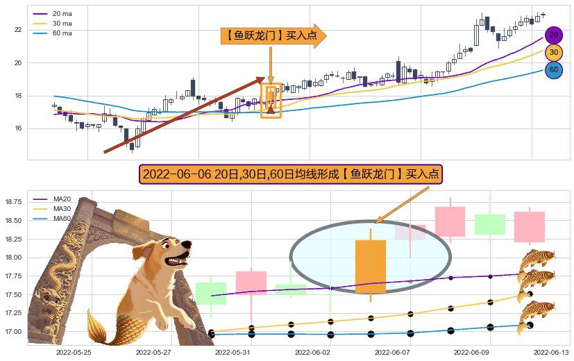 形态多维评估: ⚀ 2022-06-06日显现 20日-30日-60日均线 【鱼跃龙门】买入点 看多信号,后市看涨,买入