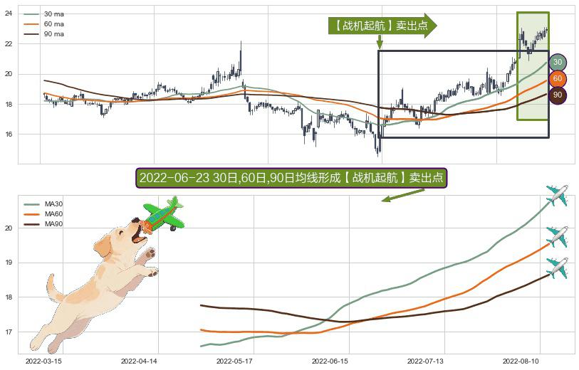 形态多维评估: ⚀ 2022-04-27日-2022-08-12日显现 30日-60日-90日均线 【战机起航】卖出点 看空信号,后市看跌,卖出