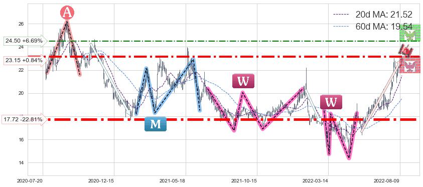 ♘ 阻力价格位24.50,可信任强度54.01%,距离最后交易2022-08-12形成的收盘价格22.96相差 +6.69%