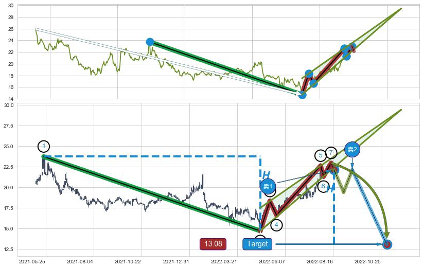 ➣ 【仅预测突破】最后价格:22.96与预测突破价格:22.12→【空间较大】后续最小【整理】第一目标价格→(2022-11-02: 13.08 )