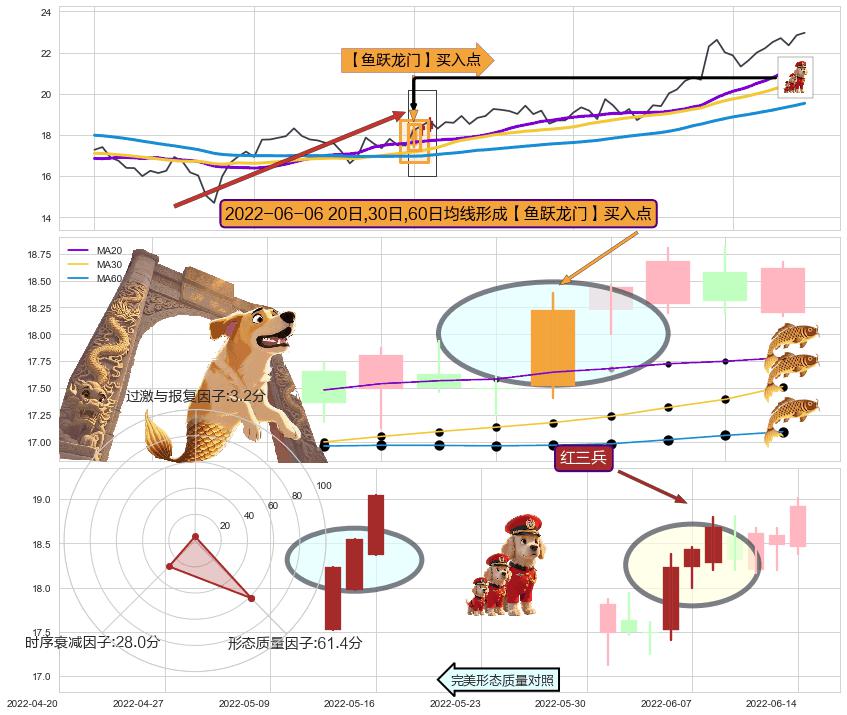 | 2 🅚:上升三部曲(升势三鸦) ➕ 🎢:【鱼跃龙门】买入点均线组合买入点信号形成后,猜想后续充分蓄势之后,上涨突破关键阻力位 ☞ 看多信号 ⇥ 【均线】交织【🅚线】⇥ 综合量化分数: 52 | > |