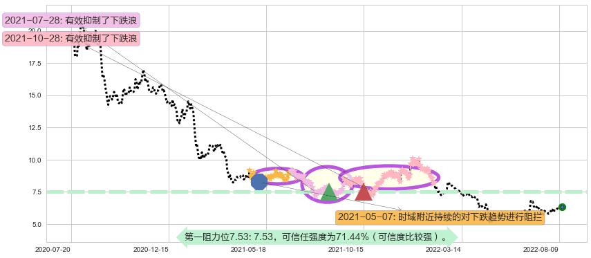 ♘ 阻力价格位7.53,可信任强度71.44%,距离最后交易2022-08-12形成的收盘价格6.35相差 +18.65%
