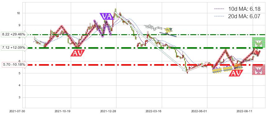 ♘ 阻力价格位7.12,可信任强度87.99%,距离最后交易2022-08-12形成的收盘价格6.35相差 +12.09%
