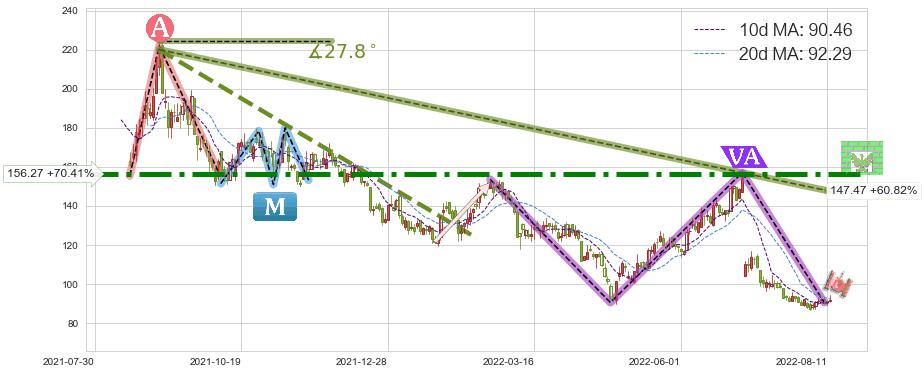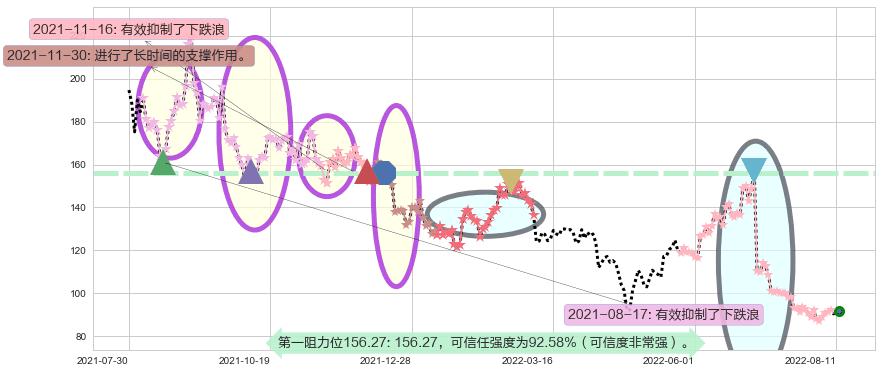 ♘ 阻力价格位156.27,可信任强度92.58%,距离最后交易2022-08-12形成的收盘价格91.70相差 +70.41%