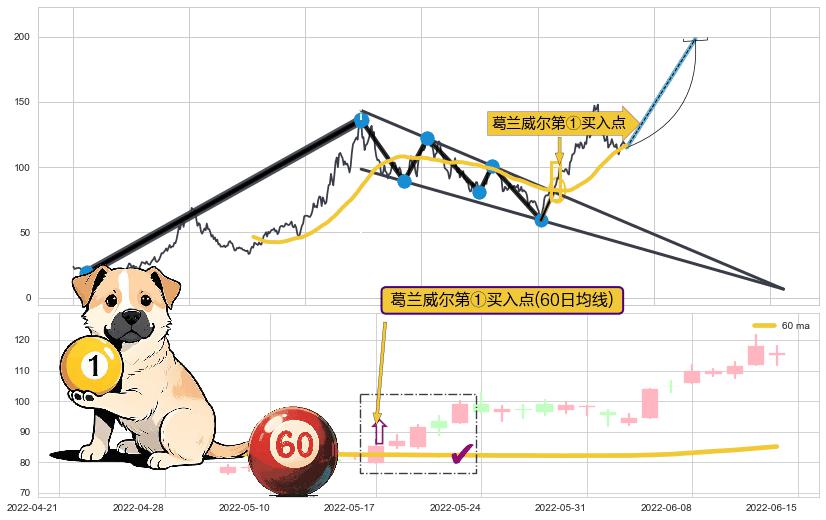 | 5 🅚:【鱼跃龙门】买入点 ➕ 📐:降楔型向上突破击穿阻力位, 猜想持续拉升上涨,被突破的阻力位已变为支撑位 ☞ 看多信号 ⇥ 【均线】交织【图形】⇥ 综合量化分数: 59 | > |