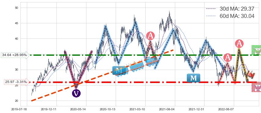 ♘ 阻力价格位34.64,可信任强度80.42%,距离最后交易2022-08-12形成的收盘价格26.86相差 +28.95%