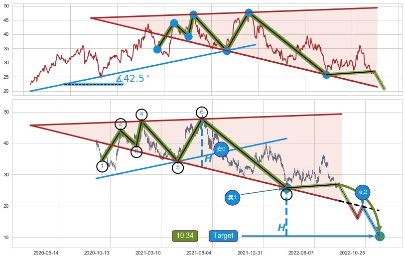 ➣ D点拟合预测价格13.86,距离最后交易收盘价格26.86相差 -48.39%