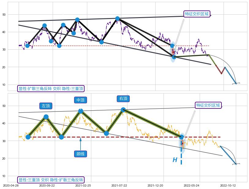 ➢ 【卖1】: 激进型 卖点→(2022-03-07: 32.08 )形成突破三重顶【反转】形态