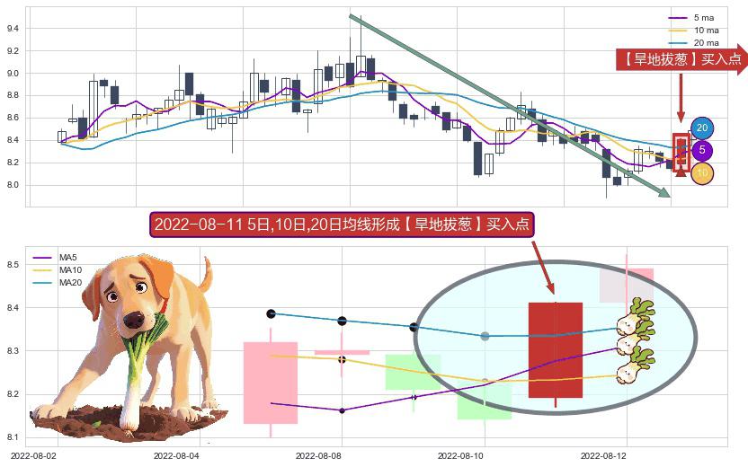 形态多维评估: ⚀ 2022-08-11日显现 5日-10日-20日均线 【旱地拔葱】买入点 看多信号,后市看涨,买入