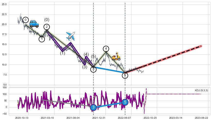 | 3 🅚:【高山滑雪】买入点 ➕ 🌊:波浪理论猜想下跌浪5已形成,猜想后续形成abc反弹上涨(均值回复) ☞ 看多信号 ⇥ 【均线】交织【图形】⇥ 综合量化分数: 52 | > |