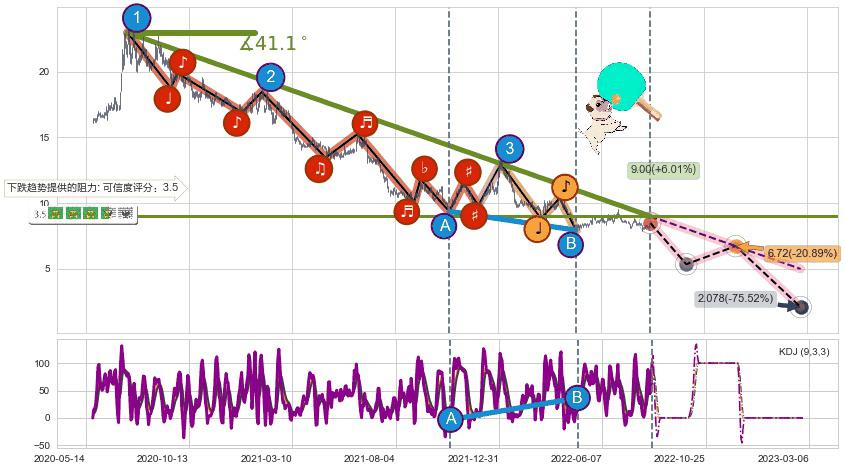 ♘ 在最后的下跌阶段2020-07-14至2022-06-29,存在 持续未破位的阻力位 ,阻力价格9.00,可信任强度78.90%,其距离最后价格8.49相差 +6.01%