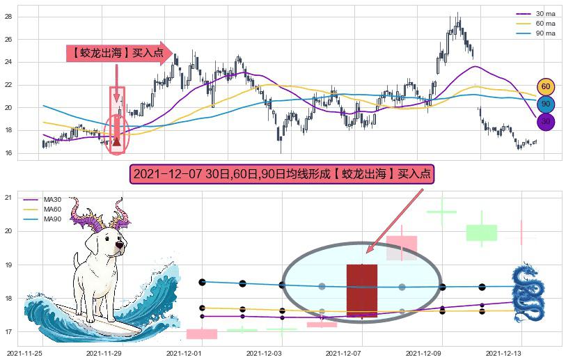 ⚀ 2021-12-07日显现 30日-60日-90日均线 【蛟龙出海】买入点 看多信号,后市看涨,买入