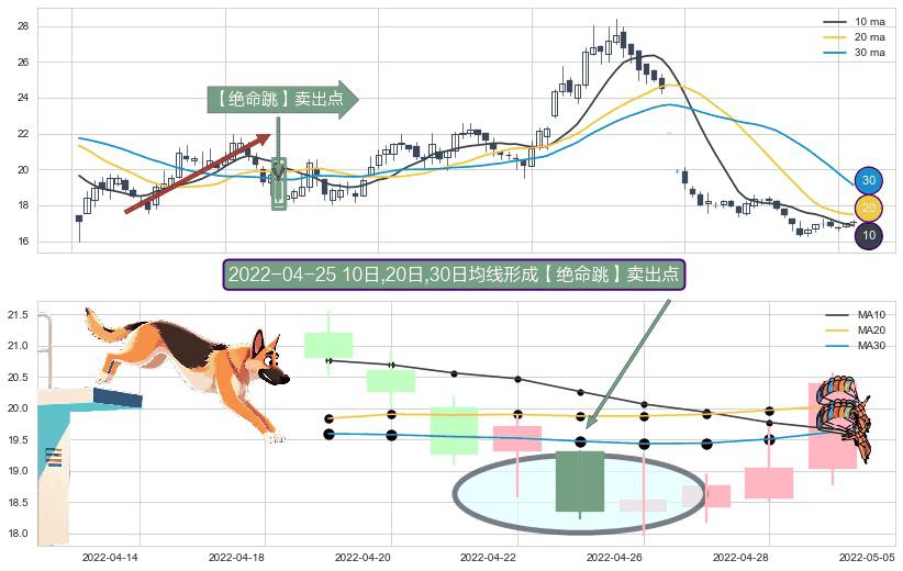 ⚀ 2022-04-25日显现 10日-20日-30日均线 【绝命跳】卖出点 看空信号,后市看跌,卖出