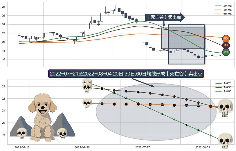 ⚀ 2022-07-22-日至2022-08-04-日显现 20日-30日-60日均线 【死亡谷】卖出点 看空信号,后市看跌,卖出