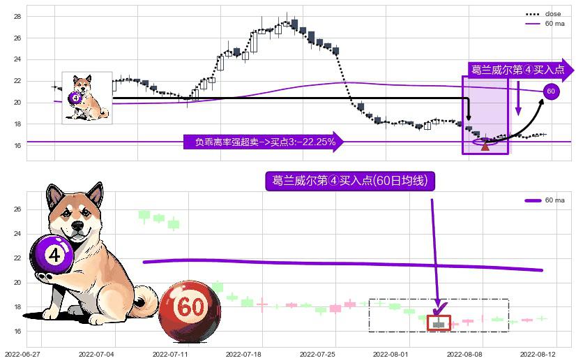 ⚀ 2022-08-03-日显现 葛兰威尔均线 60日均线 第④买入点 下降趋势均值回复的短线反弹信号,后市看涨,买进信号