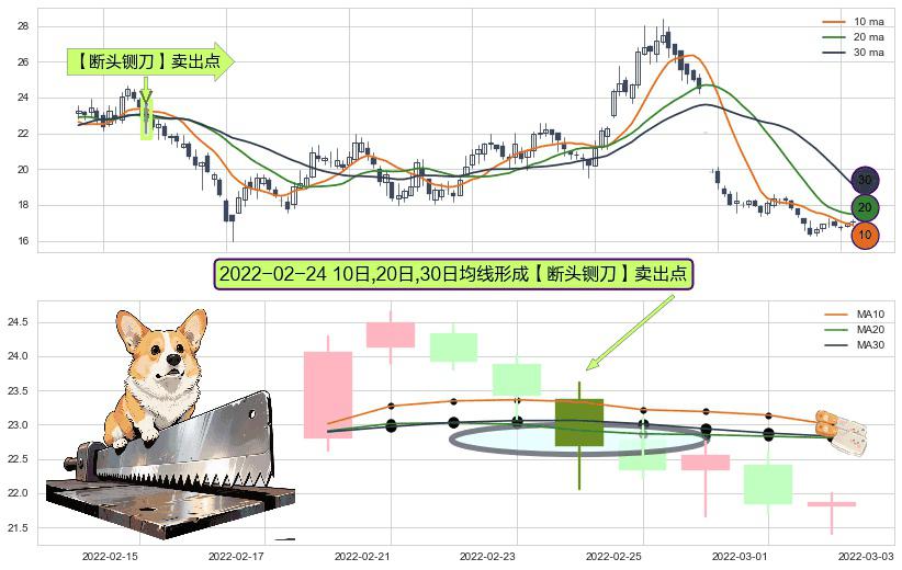 ⚀ 2022-02-24日显现 10日-20日-30日均线 【断头铡刀】卖出点 看空信号,后市看跌,卖出