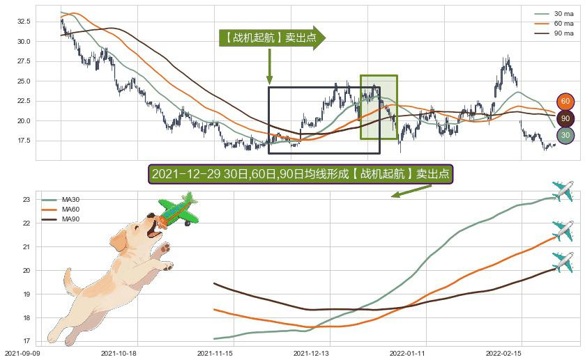 ⚀ 2021-11-09日-2022-02-24日显现 30日-60日-90日均线 【战机起航】卖出点 看空信号,后市看跌,卖出