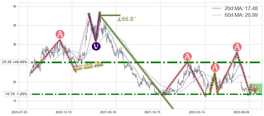 ♘ 阻力价格位16.79,可信任强度75.87%,距离最后交易2022-08-12形成的收盘价格17.01相差 -1.29%