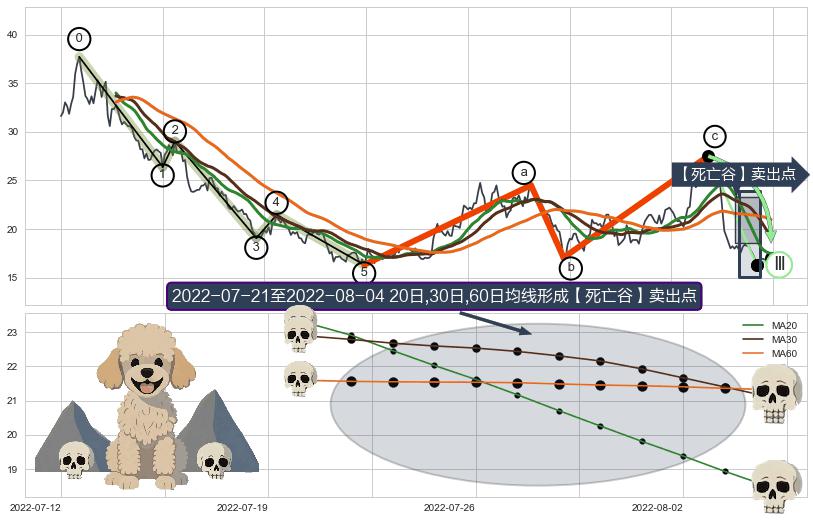 | 3 🅚:【乌云密布】卖出点 ➕ 🌊:波浪理论下跌5浪延续:猜想C点强阻力小反弹终止,猜想保持下跌5浪方向下行(均值回复后大周期继续趋势跟踪) ☞ 看空信号 ⇥ 【均线】交织【图形】⇥ 综合量化分数: 21 | > |