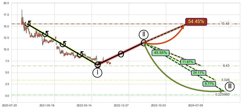➣ AI预测: 假定反转启动后, 第❶目标位置(2022-12-12, 7.91)