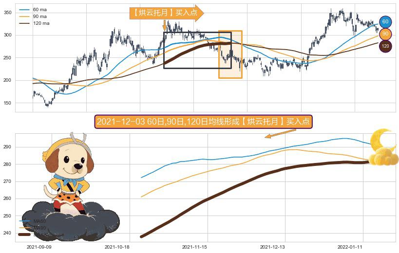 ⚀ 2021-10-21日-2022-01-17日显现 60日-90日-120日均线 【烘云托月】买入点 看多信号,后市看涨,买入