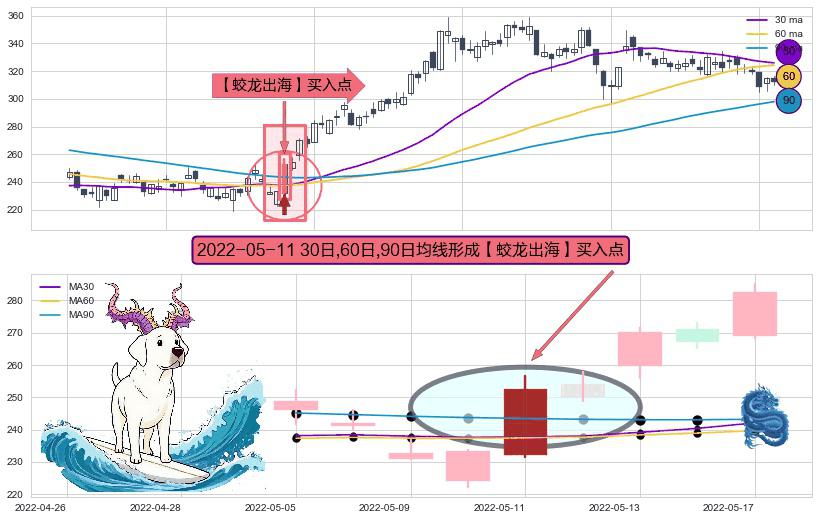 ⚀ 2022-05-11日显现 30日-60日-90日均线 【蛟龙出海】买入点 看多信号,后市看涨,买入