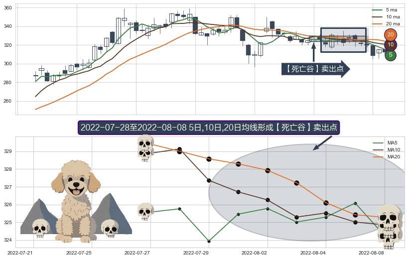 ⚀ 2022-07-29-日至2022-08-08-日显现 5日-10日-20日均线 【死亡谷】卖出点 看空信号,后市看跌,卖出