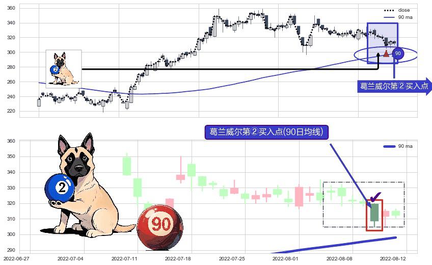 ⚀ 2022-08-10-日显现 葛兰威尔均线 90日均线 第②买入点 上升趋势的中继信号,后市看涨,买进信号