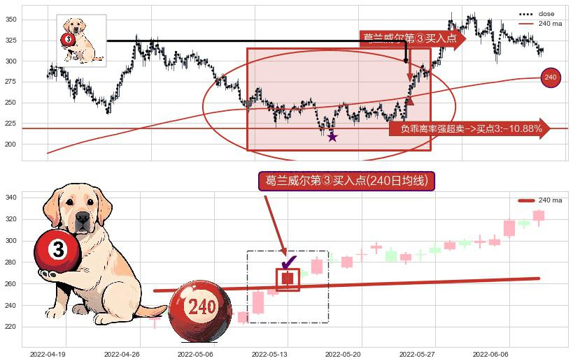 ⚀ 2022-05-13-日显现 葛兰威尔均线 240日均线 第③买入点 上升趋势的中继信号,后市看涨,买进信号