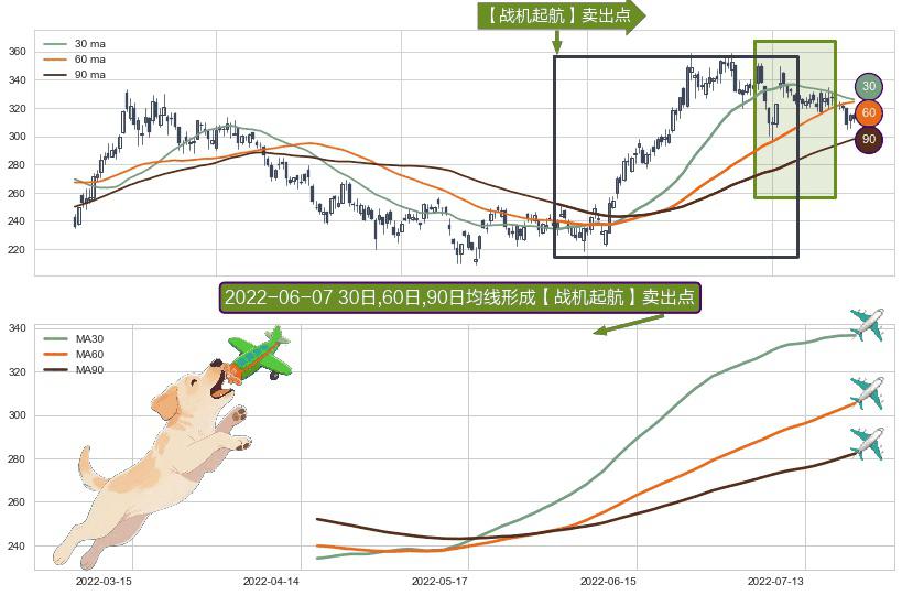 ⚀ 2022-04-18日-2022-07-21日显现 30日-60日-90日均线 【战机起航】卖出点 看空信号,后市看跌,卖出