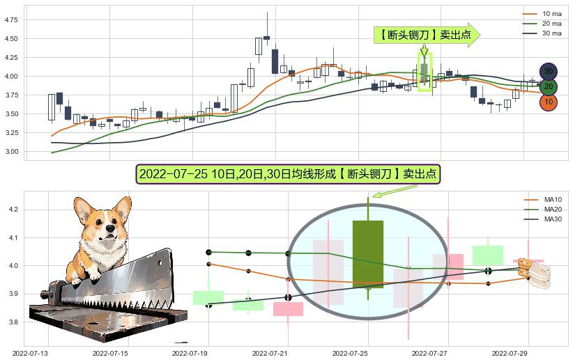 形态多维评估: ⚀ 2022-07-25日显现 10日-20日-30日均线 【断头铡刀】卖出点 看空信号,后市看跌,卖出