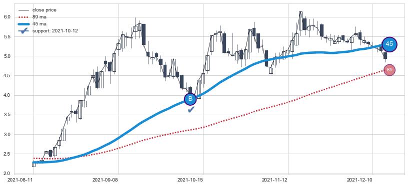 上涨趋势2021-08-11-2021-12-15,均线45确认关键支撑1处