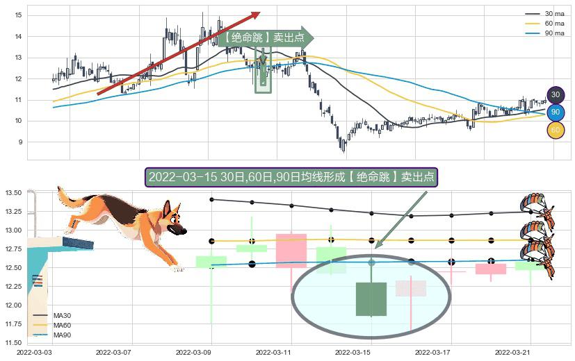 ⚀ 2022-03-15日显现 30日-60日-90日均线 【绝命跳】卖出点 看空信号,后市看跌,卖出