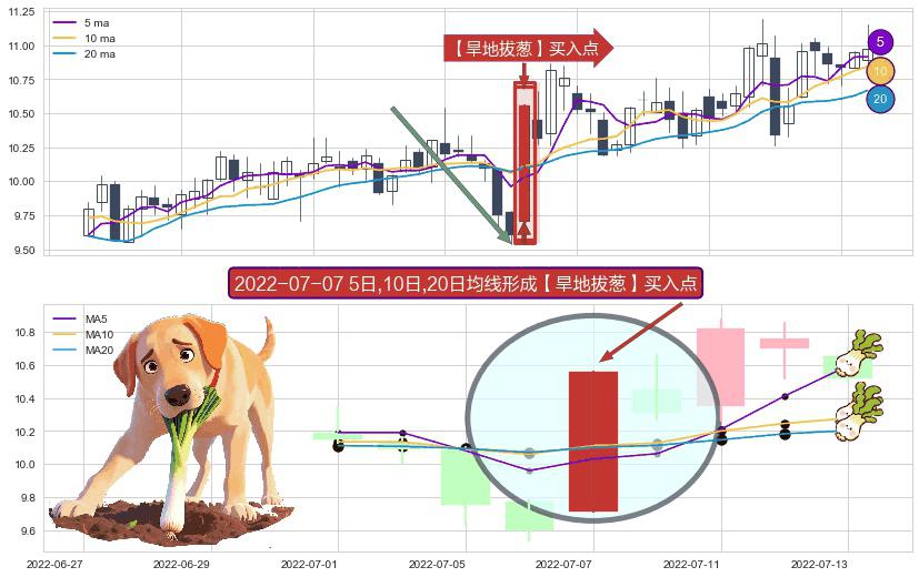 ⚀ 2022-07-07日显现 5日-10日-20日均线 【旱地拔葱】买入点 看多信号,后市看涨,买入