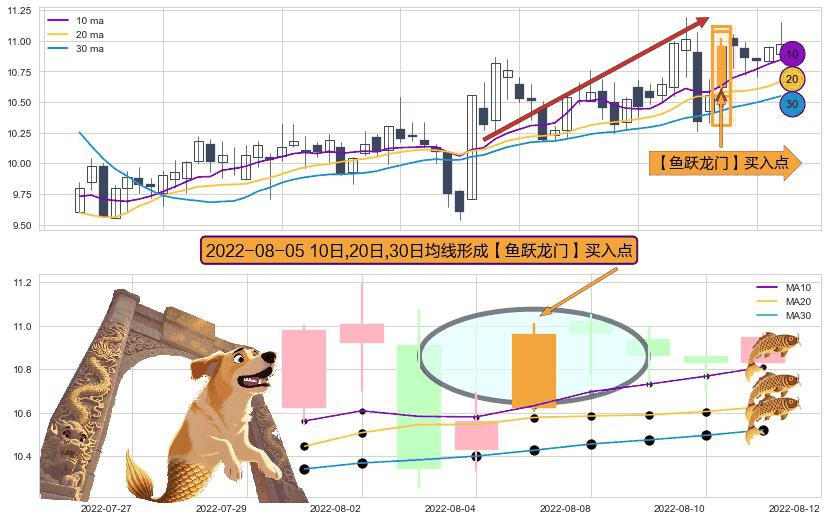 ⚀ 2022-08-05日显现 10日-20日-30日均线 【鱼跃龙门】买入点 看多信号,后市看涨,买入
