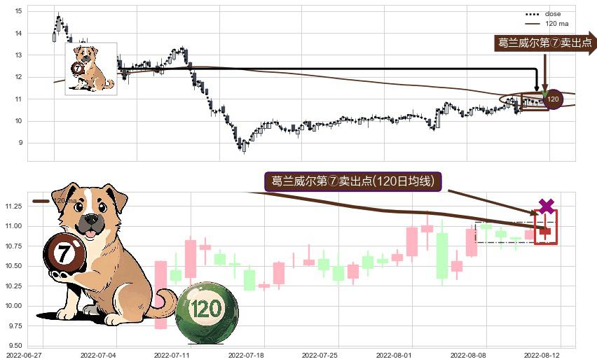 ⚀ 2022-08-12-日显现 葛兰威尔均线 120日均线 第⑦卖出点 下降趋势的中继信号,后市看跌,卖出信号