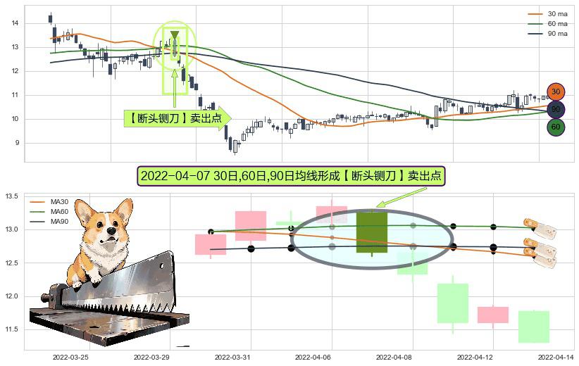 ⚀ 2022-04-07日显现 30日-60日-90日均线 【断头铡刀】卖出点 看空信号,后市看跌,卖出