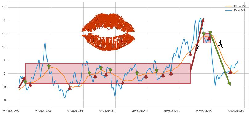 2022-03-08至2022-04-08 慢线与快线多次接触,存在上下穿越,有缠绕