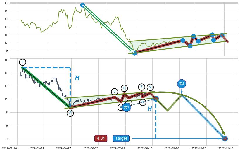 ➢ AI预测: 假定反转如期而至,第❶价格目标位置(2022-08-15, 11.03)