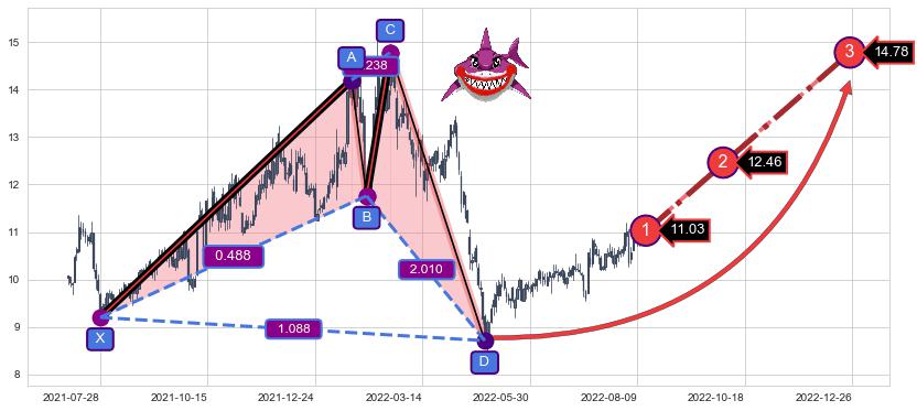 ➣ 已完成【鲨鱼】形态起点X: 2021-07-28, 终点D: 2022-04-26, 共180交易日