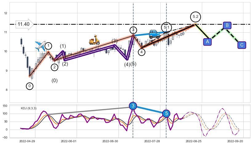 ➢ 5.1: 预测当前第5浪位置(2022-08-02, 11.01),仍然有上升空间