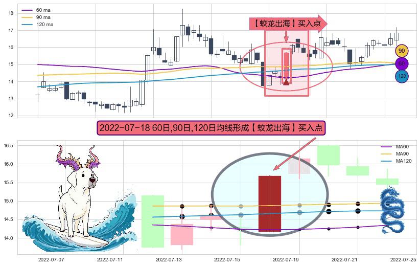 形态多维评估: ⚀ 2022-07-18日显现 60日-90日-120日均线 【蛟龙出海】买入点 看多信号,后市看涨,买入