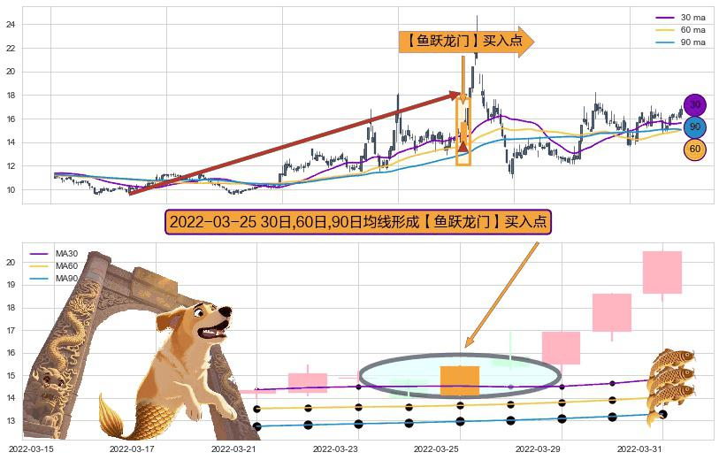 形态多维评估: ⚀ 2022-03-25日显现 30日-60日-90日均线 【鱼跃龙门】买入点 看多信号,后市看涨,买入