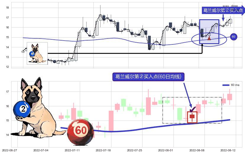 形态多维评估: ⚀ 2022-08-04-日显现 葛兰威尔均线 60日均线 第②买入点 上升趋势的中继信号,后市看涨,买进信号