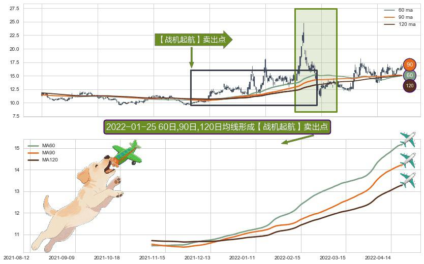 形态多维评估: ⚀ 2021-11-05日-2022-04-21日显现 60日-90日-120日均线 【战机起航】卖出点 看空信号,后市看跌,卖出