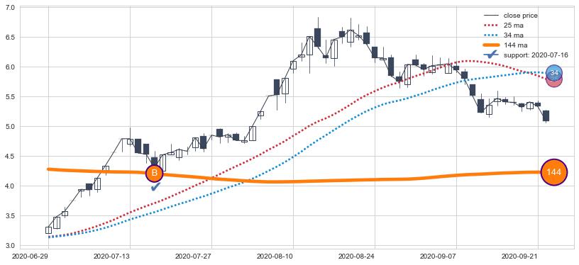 上涨趋势2020-06-29-2020-09-22,均线144确认关键支撑1处