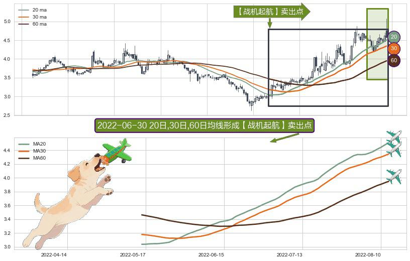 形态多维评估: ⚀ 2022-05-16日-2022-08-12日显现 20日-30日-60日均线 【战机起航】卖出点 看空信号,后市看跌,卖出