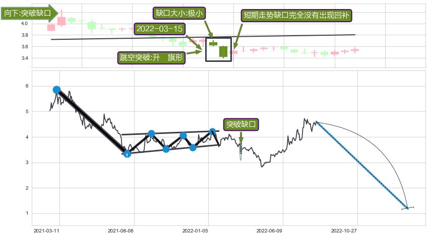 ➢ 2022-03-15形成:向下跳空【突破】缺口